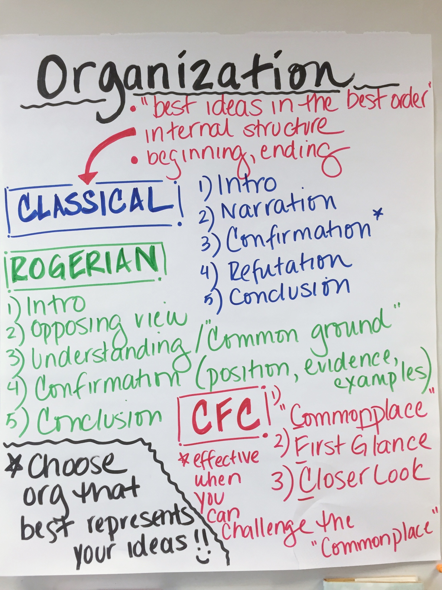 Next, after we have our ideas down, students can then think about how to best organize those ideas. When I used to teach the five-paragraph essay, this stage of the process was already done for students. After all, they were simply inserting content into a ready-made template. By focusing first on their ideas, however, students can then consider the best order of those ideas. At this stage, students compose an “up draft,” building their essay back up and giving it shape through the organizational decisions they make.