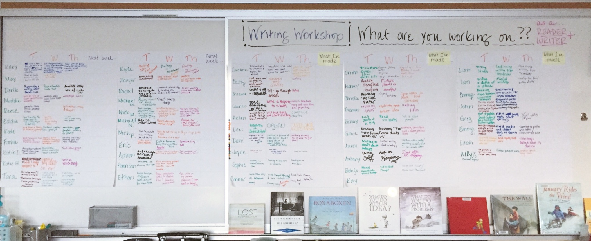 If you walked into my room this past week during workshop time, you’d see students deeply engaged with their work. Students walk into the room empowered with choice: they must ask themselves each day, what is the work I need to do to improve as a reader and writer?
