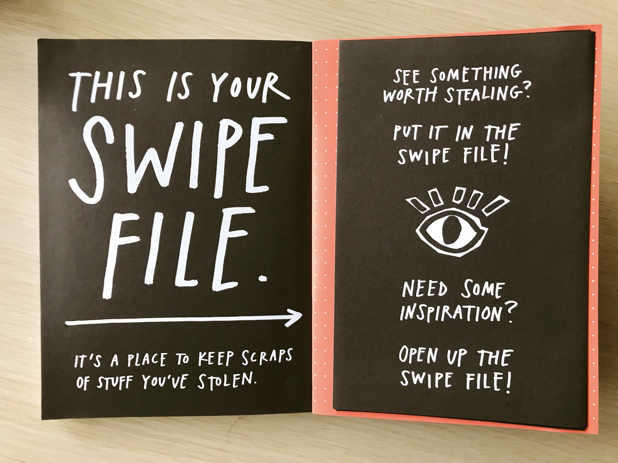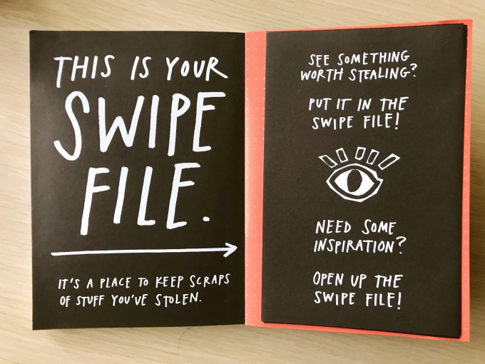 In fact, in the Steal Like an Artist journal, Kleon includes in the back of the book a small pocket to use as a swipe file: