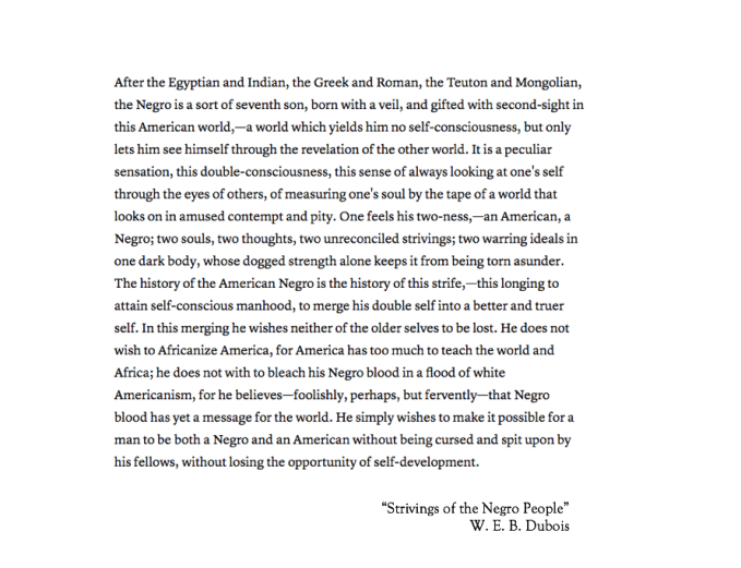 Each mentor text that goes into the swipe folder fits on a single page, and often times, the text is just a brief paragraph or two that’s been excerpted from a longer text. While we still read many, many longer full texts together, I’ve found that using small but powerful excerpts from texts allows me and my students to really hone in on a particular skill. For example, my students and I are working on definition writing right now, and just this week, I pulled the following excerpt from Dubois’ “Strivings of the Negro People” in which he explains the concept of double-consciousness: