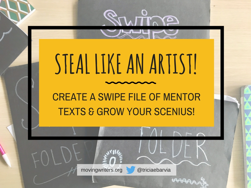 So that’s it! And if you happen to be at NCTE this year (I’m blogging from St. Louis right now!), stop by the Moving Writers panel on Sunday where I’ll talk swipe files and everything mentor texts with the team. Either way, I hope you’ll consider stealing this idea and if you do, please let me know how it goes! Feel free to comment or Tweet me at @triciaebarvia! 🙂