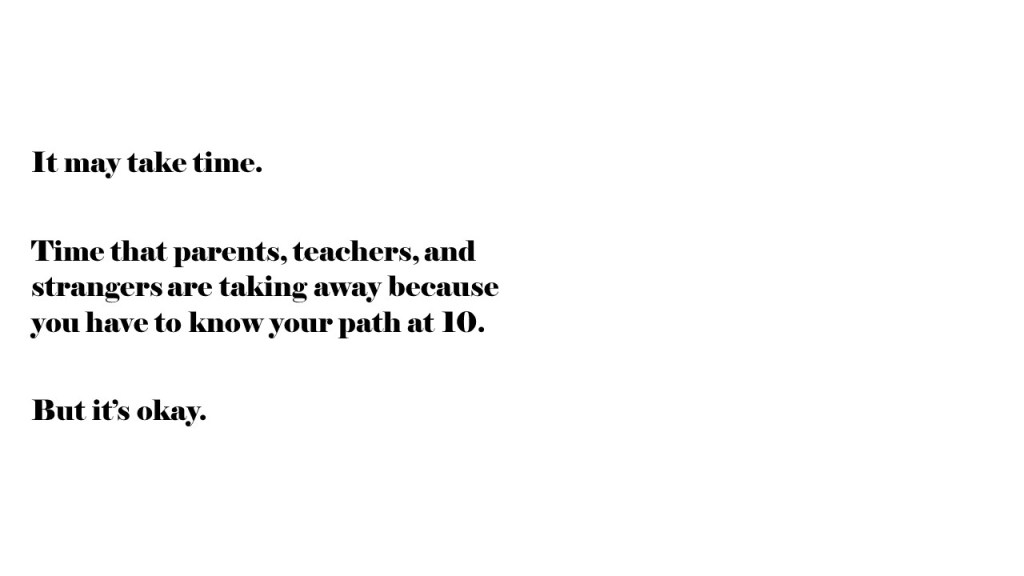 Alisa and Mckenzie turned in their finished pieces as books, employing pagination and typography as part of the poetic structure, just like the original mentor text.  Their poems appear unabridged in the slideshows below.