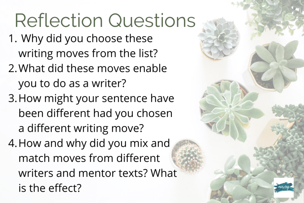 - How can I help students internalize what they are learning from a mentor text so that it becomes part of their writing identify?