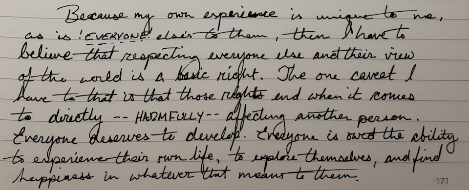 Recount an experience in which you were either on the giving or receiving end of discrimination, hate, or exclusion. Or, in which you have experienced the discrimination of or from those close to you. What were the motivating factors behinds these acts of discrimination, hate, or exclusion? Consider how these experiences (specific events, moments, periods of time) have informed your identity or changed you as a person. Did these experiences alter the way you view yourself and/or the world?