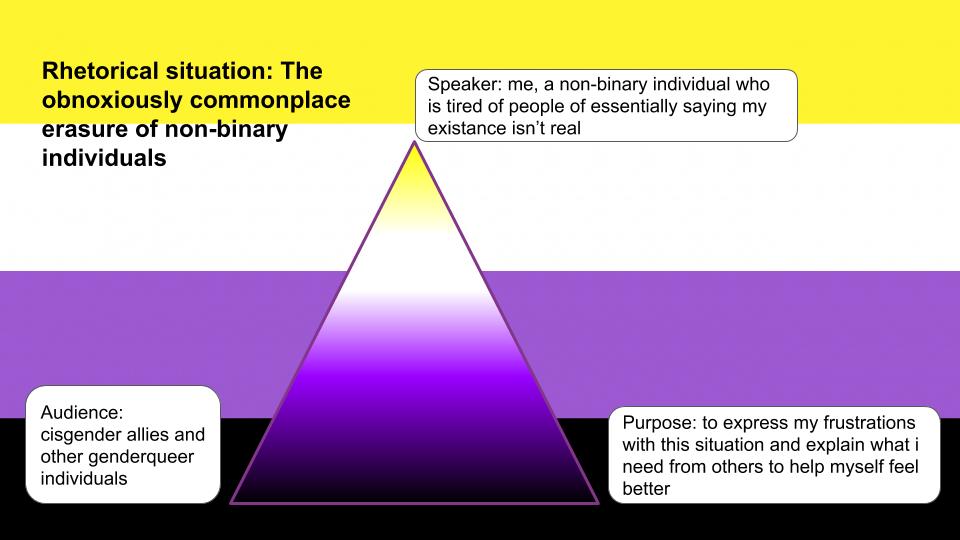 Since we had already spent so much time analyzing other texts for the intersections of Speaker, Audience and Purpose, I decided that was a logical place to start. I made some models of different things that matter to me and shared a few with the students . I told them these triangles would be the jumping off point for argumentative essays we’d be writing. We’d be focusing on all the writerly choices we’d need to make to reach our intended audiences and achieve our stated purposes.