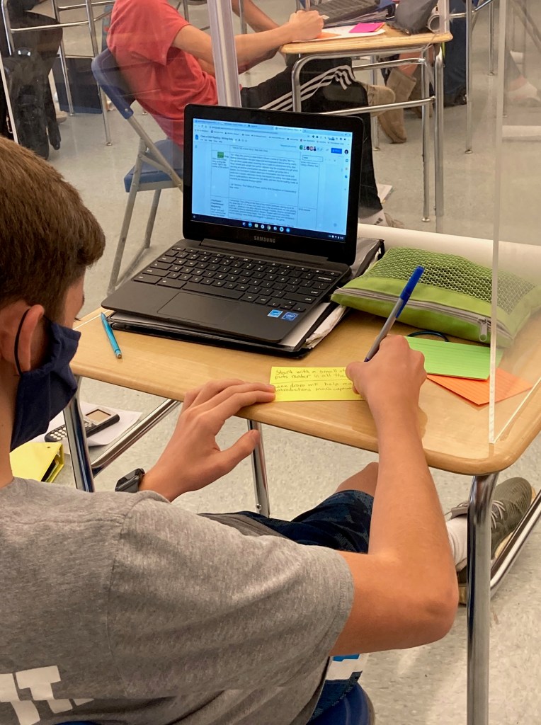 I could say, “Hey kids, use what you’ve learned about good writing,” but we all know that won’t work. We need to nudge students to make commitments by making it tangible + personal.