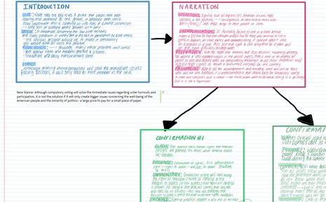 Regardless of whether students used a traditional outline or graphically remapped their ideas, it was a joy to see their revision ideas soar. It was rewarding to see their changes in argumentation and organization already developing in this stage of the revision process.