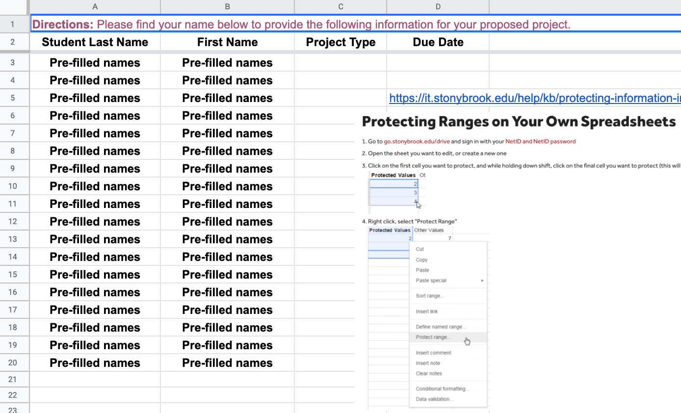 - students submit their proposed project idea and their due date on spreadsheet provided