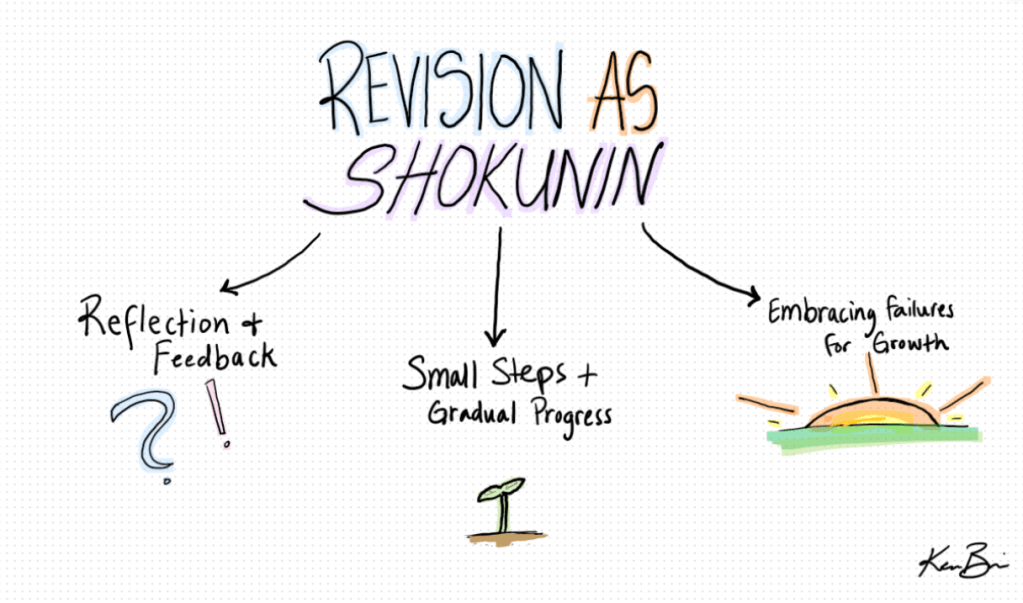 The more I thought about it, the more I saw shokunin in revision work, especially with the type of reflective and evaluative thinking involved.