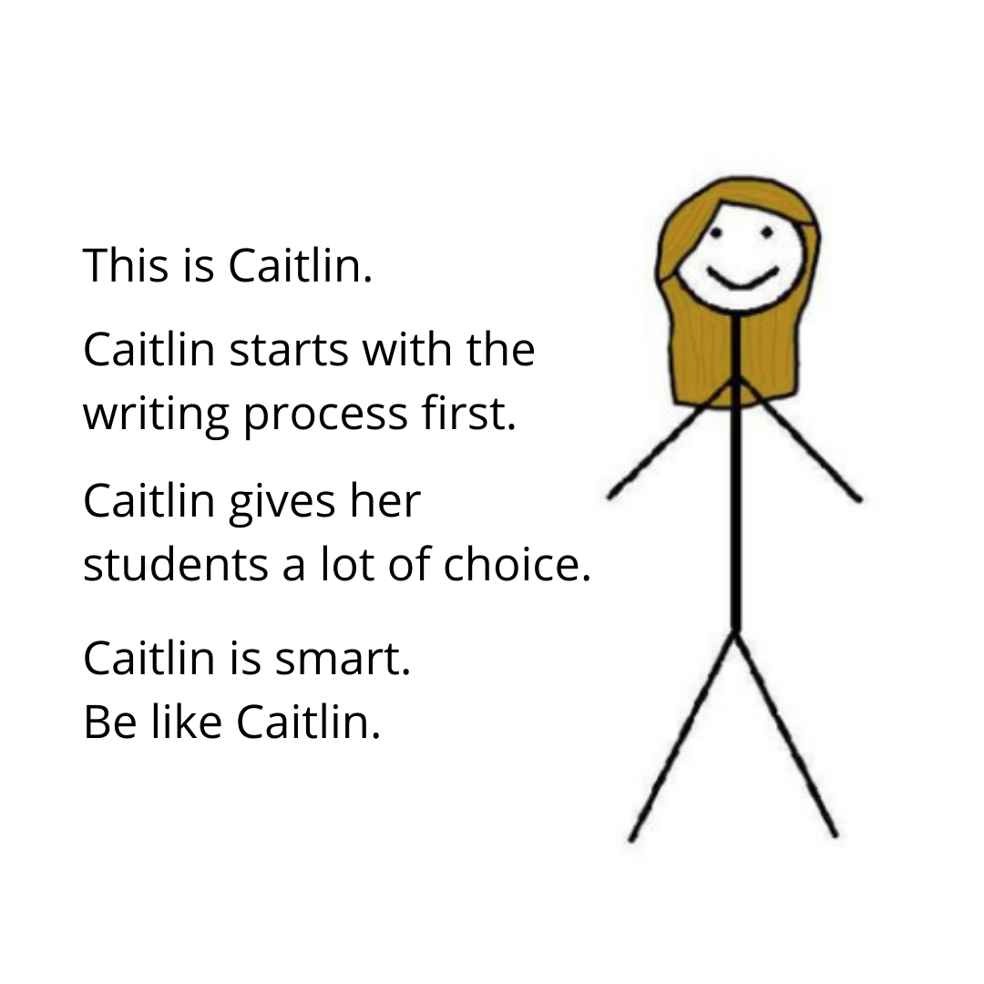 DISCLAIMER: Yes, Caitlin teaches grade 3; however, most of the processes and strategies we discuss I could easily have applied into a high school context (even an IB or AP classroom). She doesn’t just talk about how to teach writing in a grade 3 classroom, she talks about best practice.
