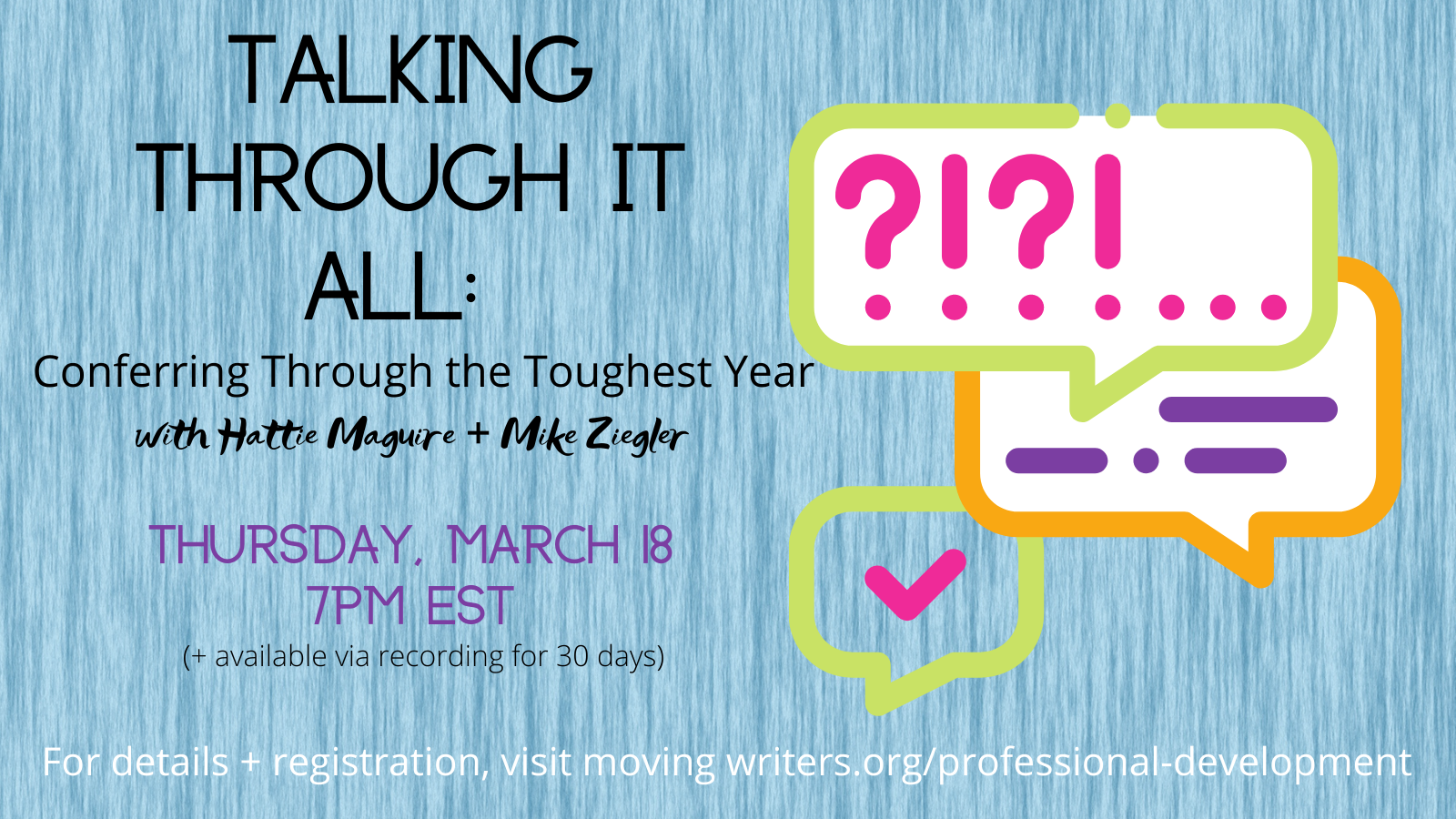 Time and resources are tight this year, so it’s tempting to cut conferring from the schedule. We argue that this year (and all years) it needs to be at the center of all we do. Participants will learn how to build a conferring community that encourages:
