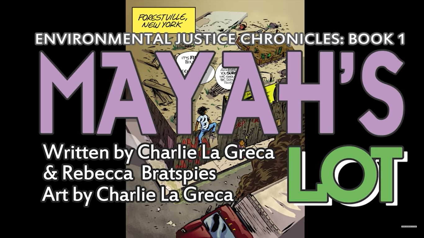 In Charlie La Greca and Rebecca Bratspies’ environmental justice comic, Mayah’s Lot, the image of the aspen seed is prominent. The titular character intends to plant an aspen seed in a garden she secretly tends on a vacant lot, just before finding out a corporation’s plan to transform the lot into an industrial toxic storage waste facility. The seed growth imagery symbolizes how the work of environmental justice can be achieved: Mayah’s voice is joined by others in her community as they feel increasingly empowered to influence decision-making conversations affecting their collective health. As Mayah’s neighbor, Mr. Tatsumi, explains to her in a foreshadowing image, “One Aspen seed can create an entire forest.” Beautifully illustrated by La Greca, the comic culminates in a page-length panel of Mayah’s community, imagined through joyful scenes of her neighborhood as a strong root system extending out in an infrastructure of support.