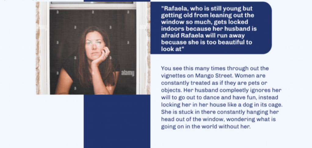 This time, my students were looking for “trends” in House on Mango Street. Our goal with this particular notebook was to notice things that Cisneros seems to either do (writing moves) or repeat (thematic trends or “big ideas”) in the text and try to make sense of her choices as a writer. We gave them some starting points (she loves metaphors in this text, she often focuses on women as role models for the narrator, etc) but I was immediately struck by how many of my students ventured off into their own independent territory instead. Some were struck by how honest the book is about sexual assault, other noted the strained relationship between the narrator and her little sister. Thinking like writers already–it’s just a notebook. Why not take a risk?