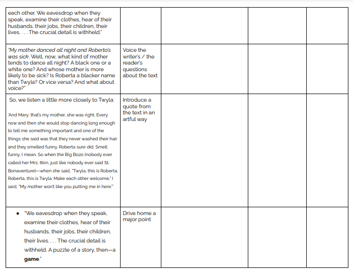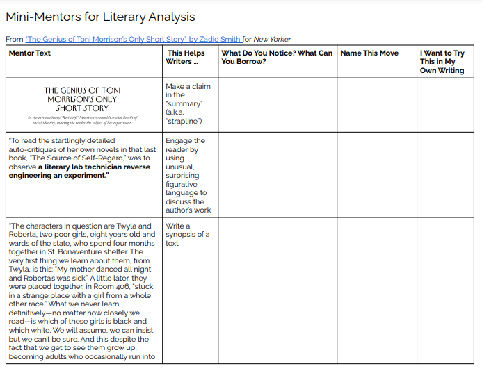Look at all students can learn about making claims, using supporting evidence, and writing literary analysis with voice and style from Zadie Smith without getting bogged down in writing that is maybe just too much.
