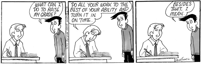 Of course, drawing over 6,000 comic strips about teaching over the past 22 years has given me plenty of experience dealing with irony. All tragedy is based on irony – but so is all humor.