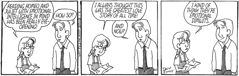 We try to answer the question, how emotionally intelligent are the characters in Romeo and Juliet? The answer? Not very. (Except Benvolio. As the voice of reason, he leaves after act 3 and the whole play goes to hell.)