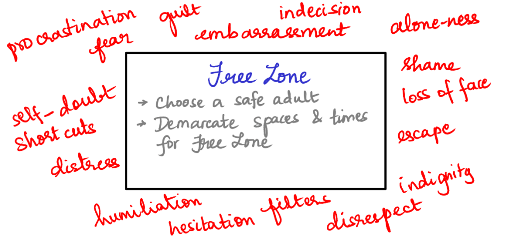 A Free Zone is easier said than done. Many classrooms are not safe enough spaces for students to take such a risk. I encourage students to