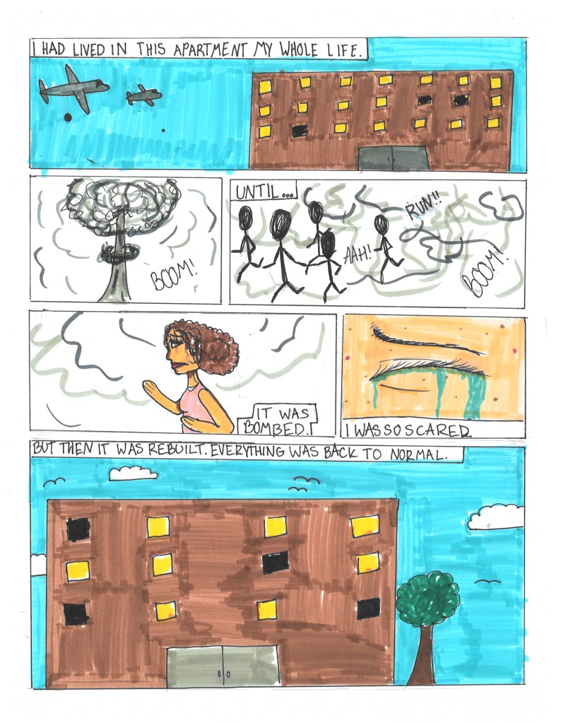 Task: Create a graphic novel-style illustration of a scene from a VHM survivor’s testimony.