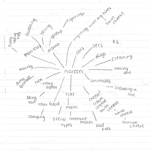 The second is a Frustration Map, for all the things you hate. Here are my directions for students: Write Frustration Map at the top of the page, and then put your name in the middle. List everything that ticks you off, large or small, important or trivial. Try to focus on people’s behaviors rather than just naming them.