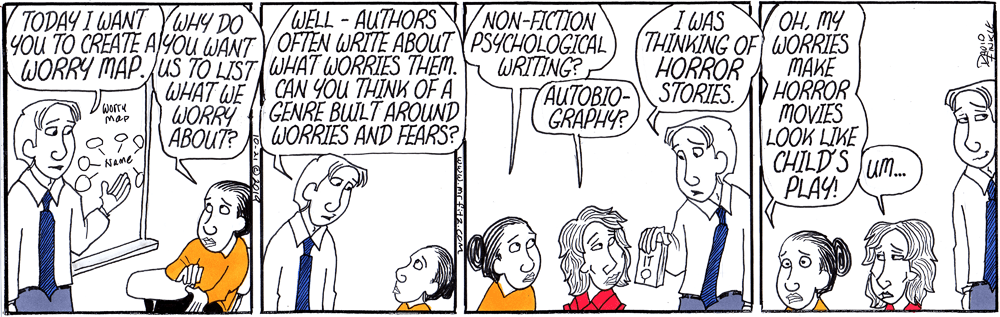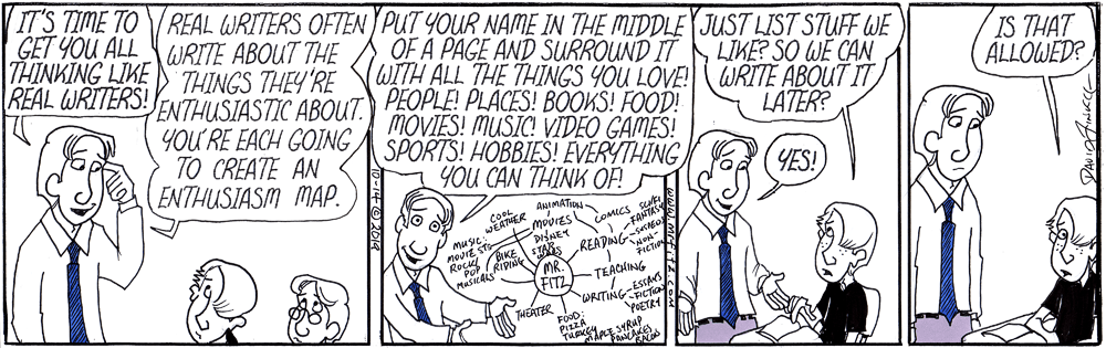 How do you help students find things to write about? How do you help writing become self-discovery? Connect with me on Twitter @DLFinkle or on Facebook at https://www.facebook.com/mrfitzcomics