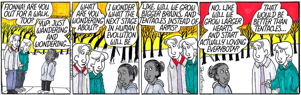 I also added a fourth map: the Wonder Map. Here are the student directions: Wonder Map: a list or web of everything you wonder about, silly (If Mickey’s a mouse and Pluto’s a dog – what’s Goofy?) or serious (how can the universe go on forever?) or in-between, or that gives you a sense of wonder (starry skies and fire flies and…). This map usually creates a lot of great discussion. For instance, I discovered that many students – big surprise – are interested in life after death. I also discovered many students suffer under the delusion that Goofy is a cow. Silly students – he’s an anthropomorphic dog!