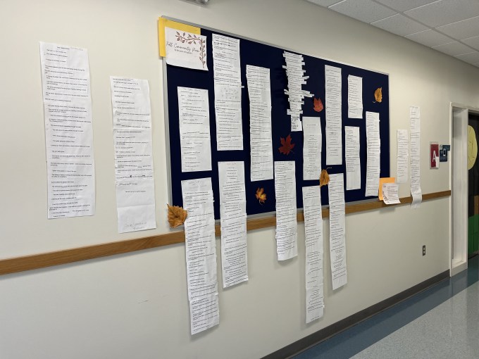 This time, students worked in groups with the lines to compose their own version of the community poem. (Next season, they will create a digital representation of the community poem inspired by the videos Penny Kittle and Kelly Gallagher shared at NCTE this year and in their most-recent book.)