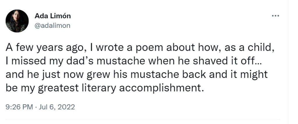 Another thing that I think is worth noting, and discussing with writers using this as a mentor text is the fact that Limon chooses one element of the photo as a focus for her poem. Yes, it’s about more than her father’s moustache, isn’t it? But it’s the central element, one that evokes something for her as a writer. It’s not just a great writing move for our writers, but it’s also a good lesson in analysis.