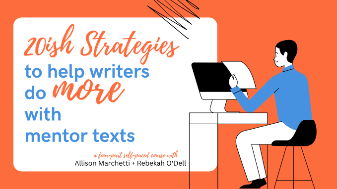 If you’ve read Writing With Mentors and A Teacher’s Guide to Mentor Texts and you’re still unsure, you’re struggling, or you’re ready for even more, this course is for you! It includes our latest thinking + newest strategies for making mentor texts work for you and your writers!