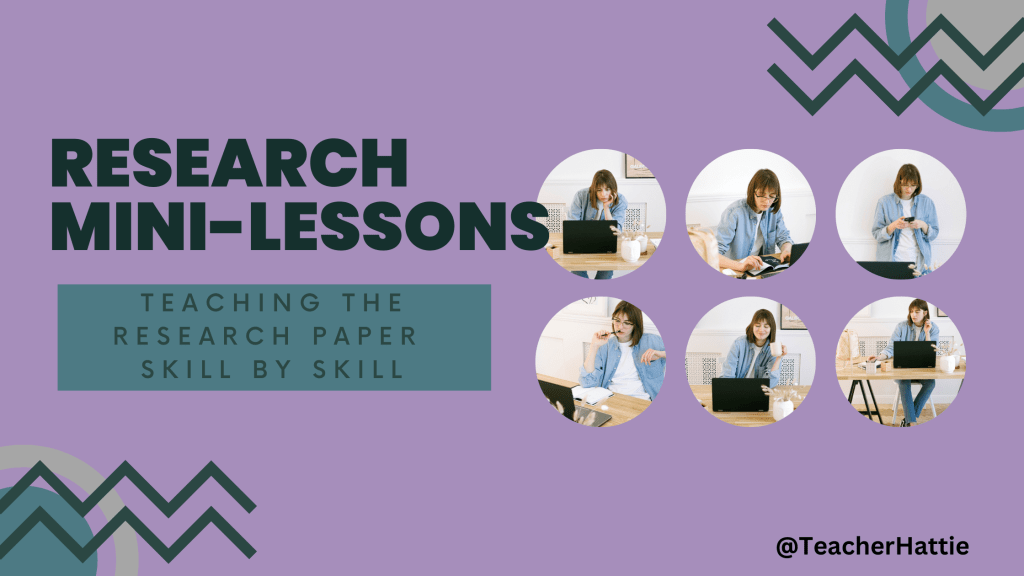 Mini lessons are, in my opinion, key to improving research writing because they allow you to zero in on just one skill at a time. That’s always hard to do when looking at a piece of writing, but I think it’s even more challenging when looking at longer research-based piece. The whole thing has to work together. And the whole thing is soooo long, usually. Still, zeroing in on skills in small chunks is important because it gives students a way to improve the writing versus just complete it.