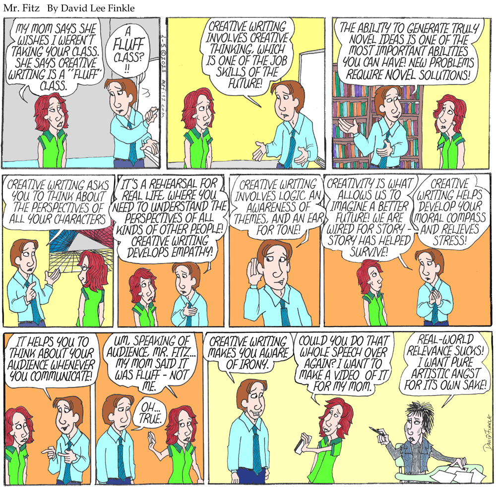 Do you encourage students to be creative? Share some ideas in the comments below! You can connect with me on Twitter @DLFinkle or on Facebook at https://www.facebook.com/mrfitzcomics