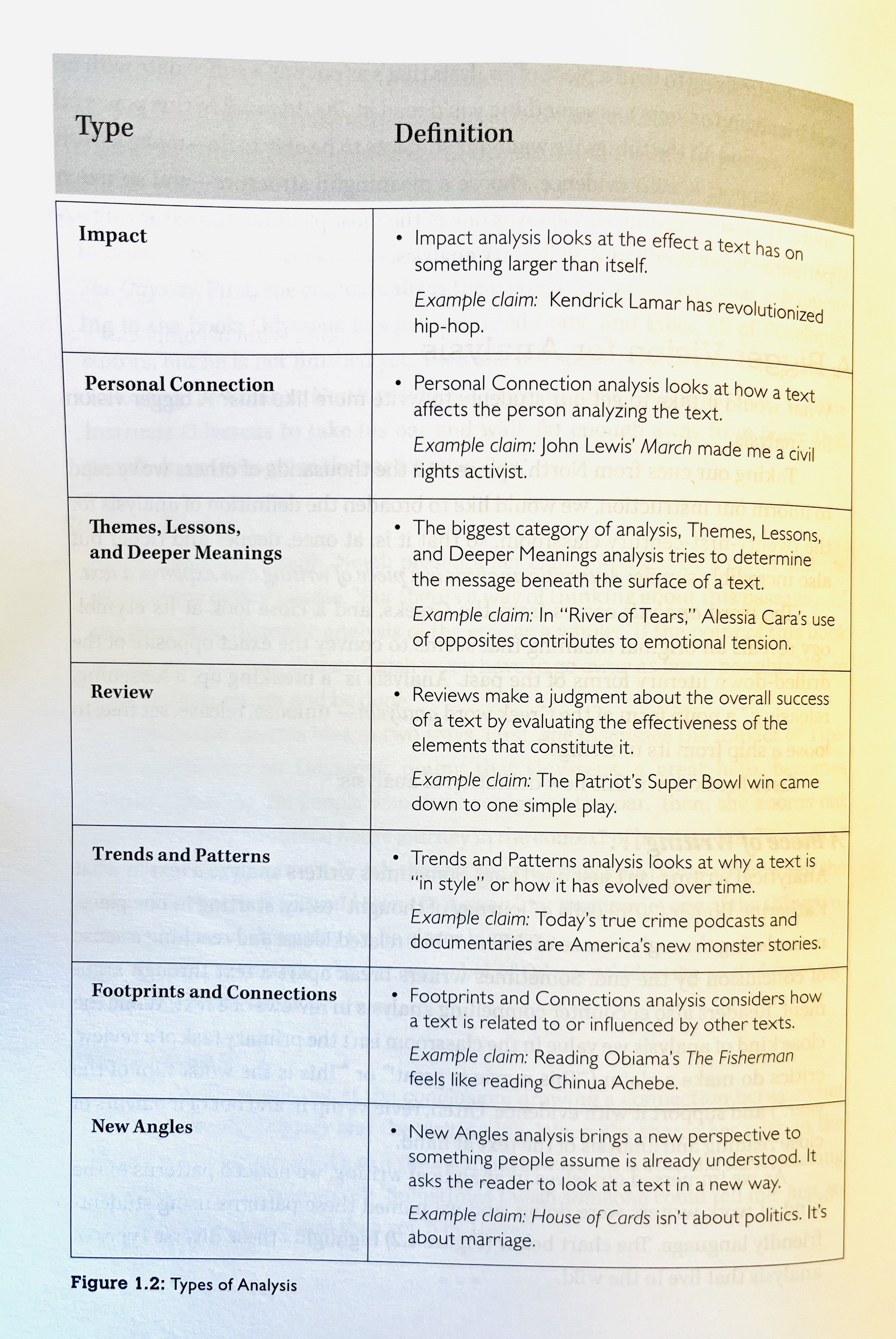 When Allison and I wrote Beyond Literary Analysis, we read thousands of pieces of writing in the quest to figure out what kind of analysis professional, published writer truly write outside academia. In other words, beyond what English teachers have culturally and historically deemed to be our analytical territory, what kind of analytical writing will our students actually do out in the world?