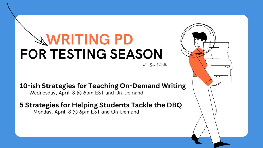 The incredible, brilliant Sam Futrell (full-time classroom teacher, author, president of the Virginia Council for the Social Studies, Retro Report fellow, etc.) is offering two new webinars (live and on-demand the next day) to help teachers help students streamline the process of on-demand and DBQ writing.
