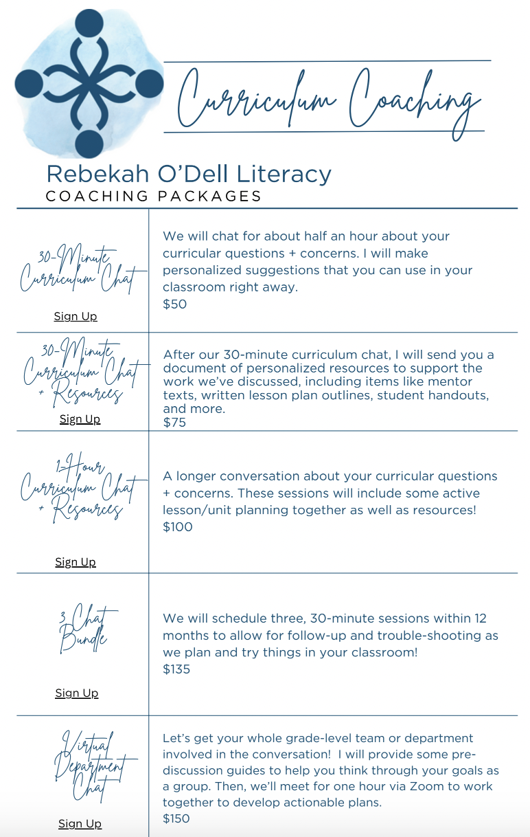 You can always register for a coaching session (for you, your grade level , or department!) by clicking the links on this document. New coaching sessions open up on the first of each month! Also, members of the Moving Writers Community have the opportunity to submit their questions to get picked for a free coaching session like the one I recorded with Constance!