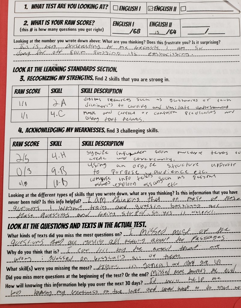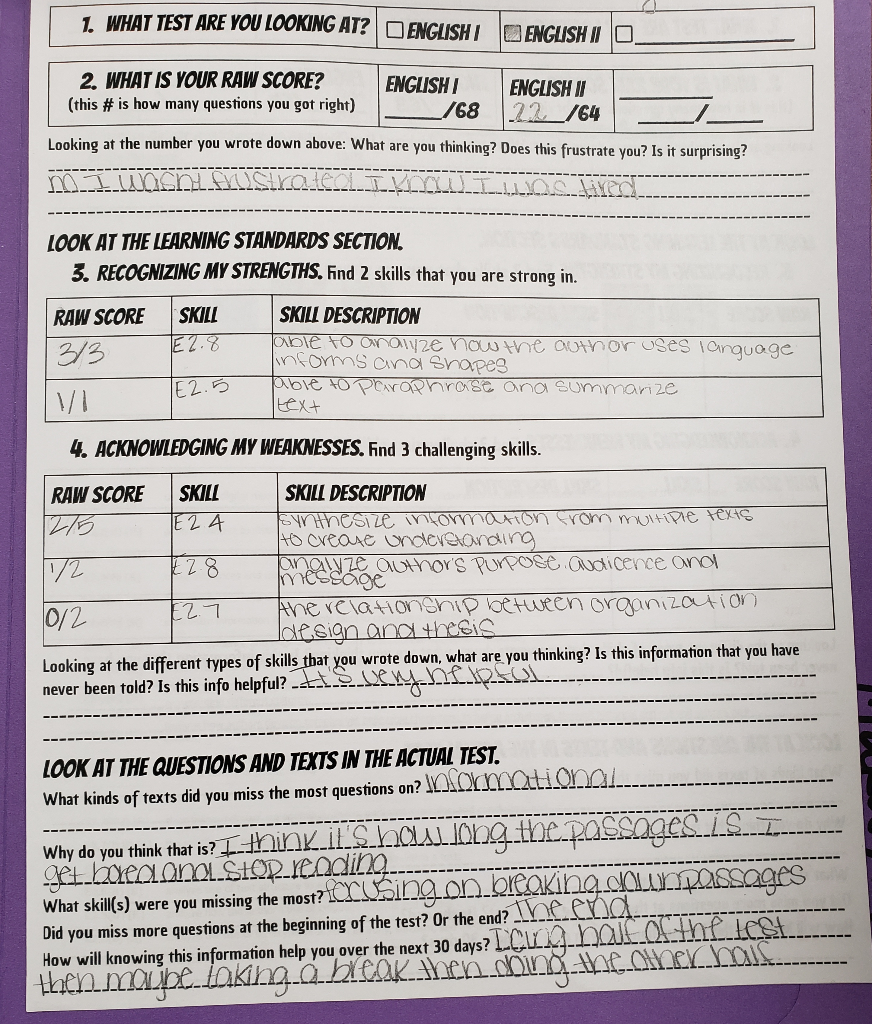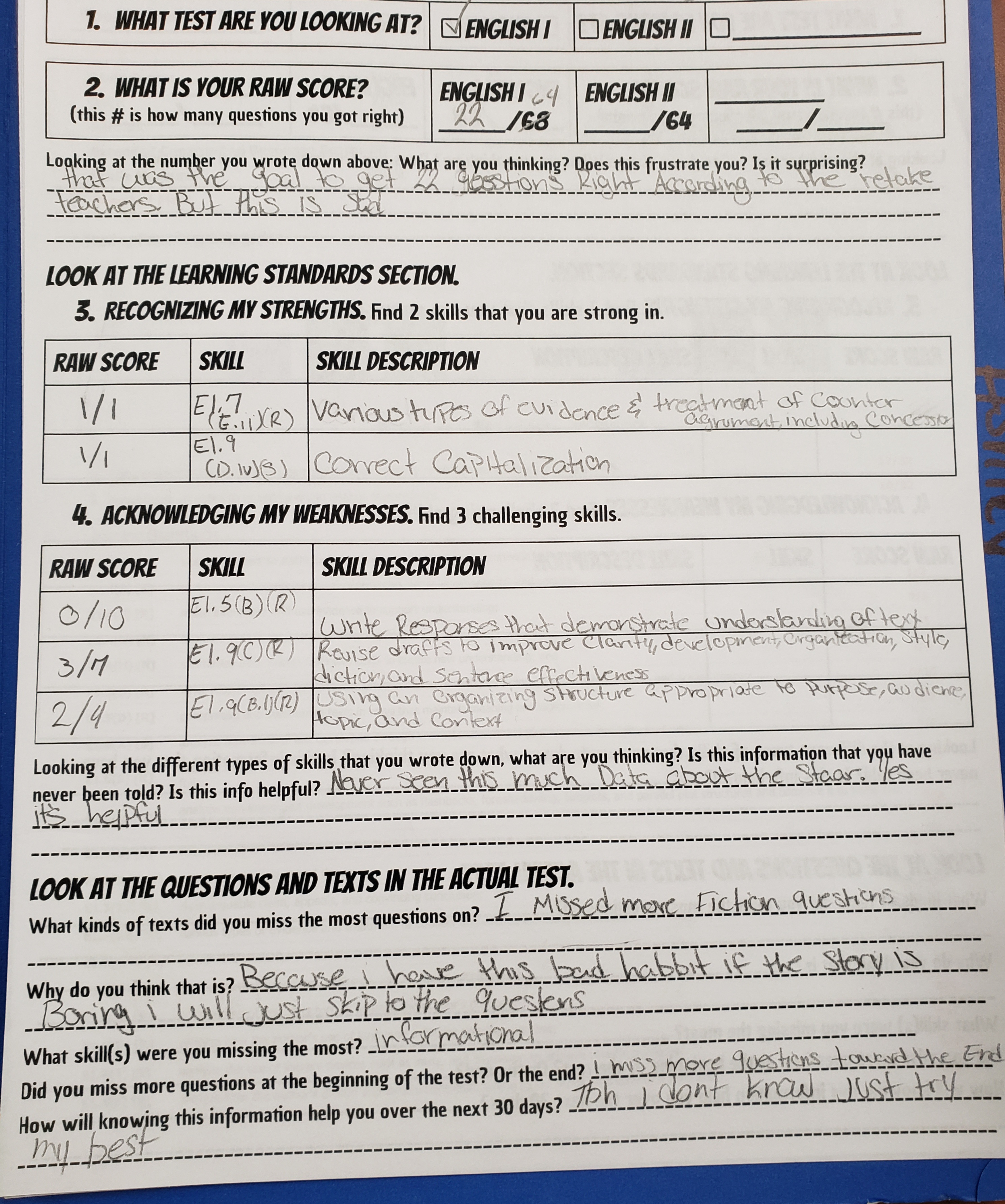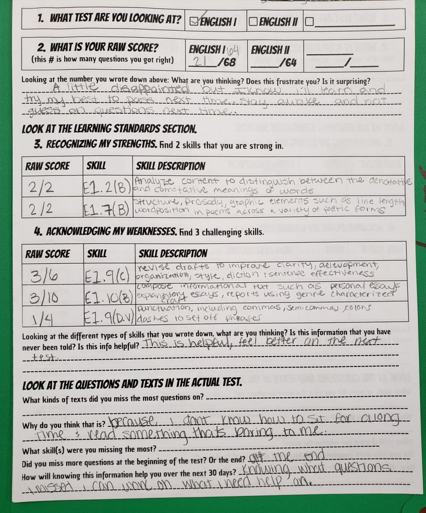 Overall, my students’ feedback on this activity was overwhelmingly positive. Many of the students that I am teaching have taken their English STAAR test four, five, even six times and failed. As you can see from their reflections, many of them had never been given information like this!
