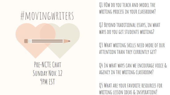 It’s #NCTE week, and the #movingwriters team couldn’t be more excited! Because we pretty much can’t take our mind off of #NCTE, we had a little pre-NCTE celebratory chat last night exploring some of the themes we’ll be uncovering in our presentation on Sunday at 12:45! Here are the questions we considered: Missed the chat? […]