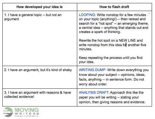 No matter where students are in their writing, flash drafting can be a useful exercise if students are invited to flash draft on their own terms.