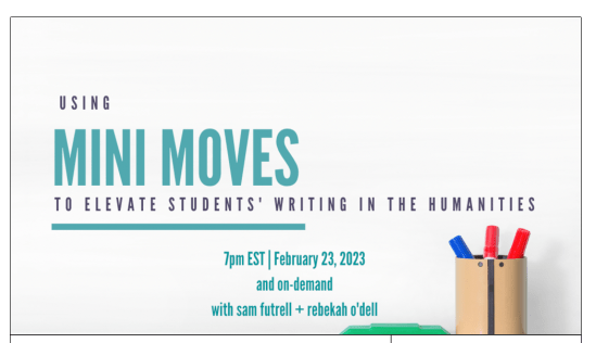One of the things I’m loving most about Mini Moves for Writers is how flexible the video lessons are — able to slide into so many different kinds of writing units and activities. For example, take the Scene Drop Intro. Writers could use this in a review, an op-ed, a profile, a personal essay. And […]