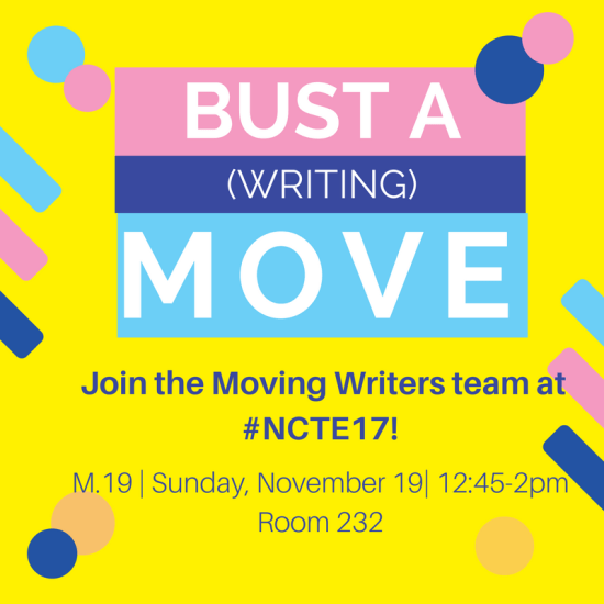 Says she wants to dance to a different groove Now you know what to do G bust a move – – Young MC Among my all-time NCTE highlights came this year as members of the Moving Writing crew gathered in real life to share some of our favorite writing moves to support writers throughout […]